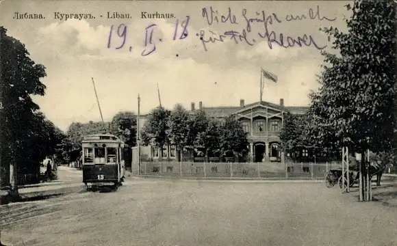 Ak Liepaja Libau Lettland, Kurhaus, Straßenbahn