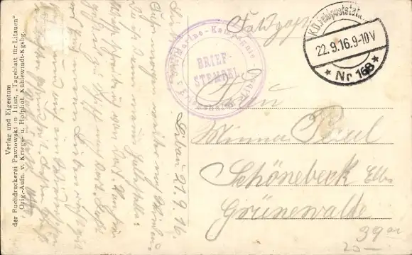 Zustand siehe Scan, 1916, gelaufen - ca 14 cm X 9 cm