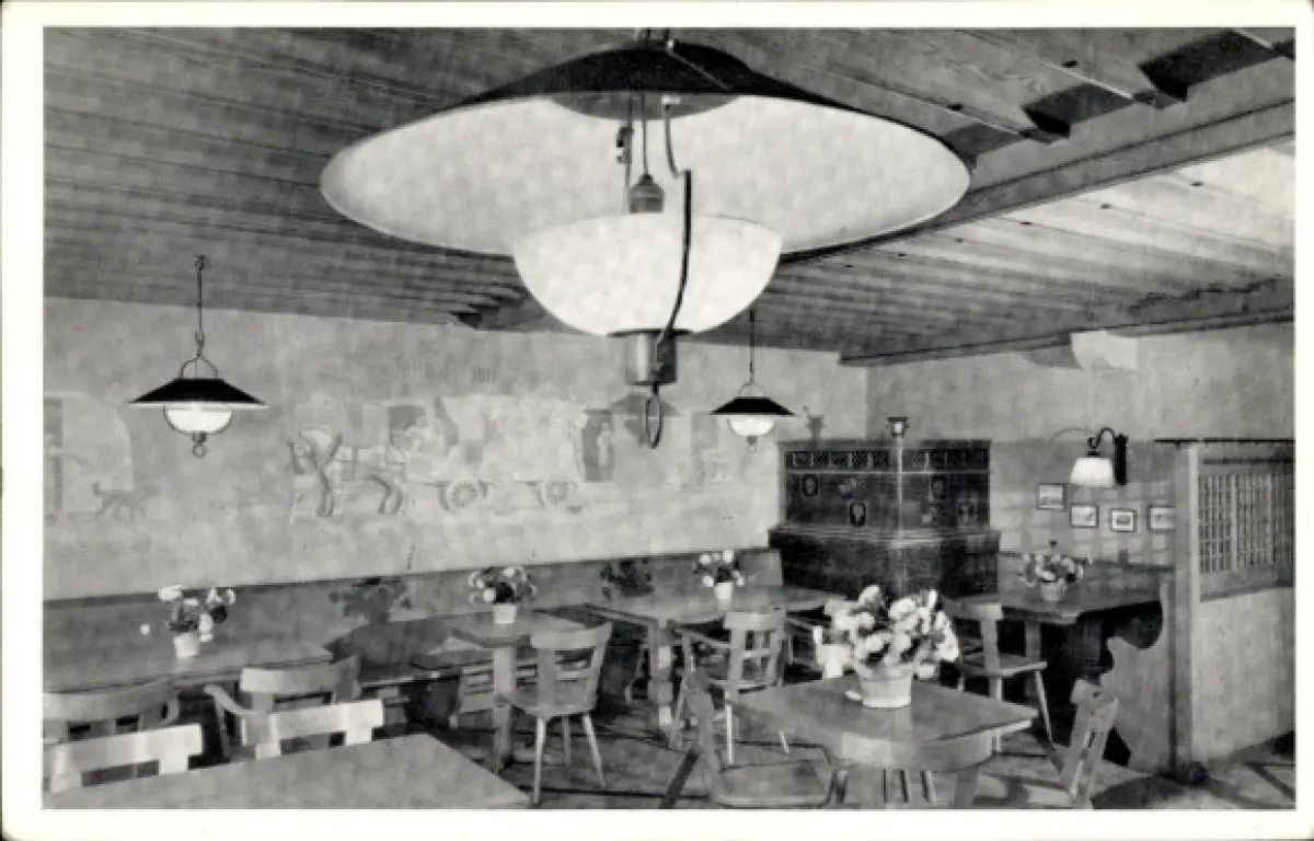 Ak Liestal Kanton Basel Land Schweiz, Innenansicht eines Gastraums, Tische, Stühle, Blumenvasen,