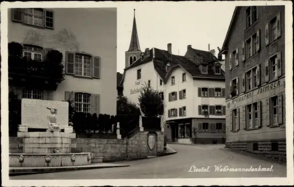 Ak Liestal Kanton Basel Land Schweiz, Wehrmannsdenkmal, Restaurant Salmeck