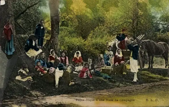Ak Life in the Fields, Picknick bei einer Hochzeit auf dem Land