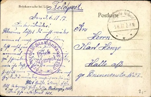 Zustand, siehe Scan, gelaufen, 1917 - ca 14 cm X 9 cm