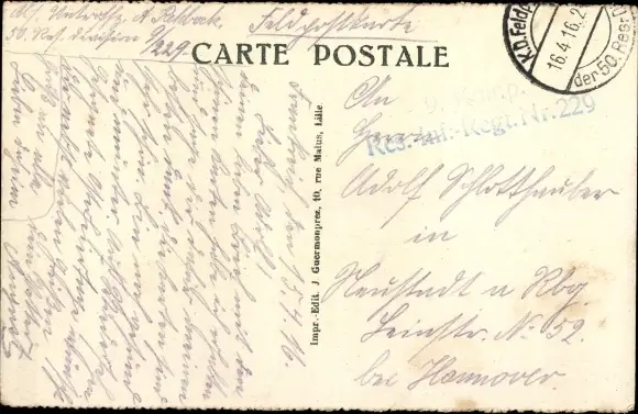 Zustand, siehe Scan, gelaufen, 1916 - ca 14 cm X 9 cm