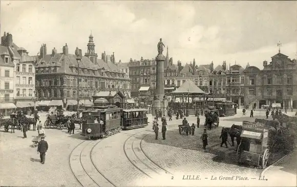 Ak Lille Nord, Grand'Place, Denkmal, Straßenbahn