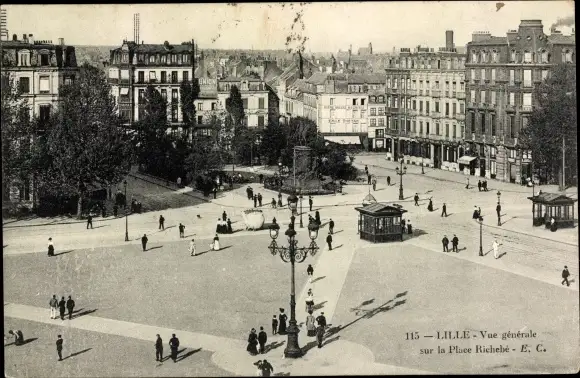 Ak Lille Nord, Vue générale sur la Place Richebé