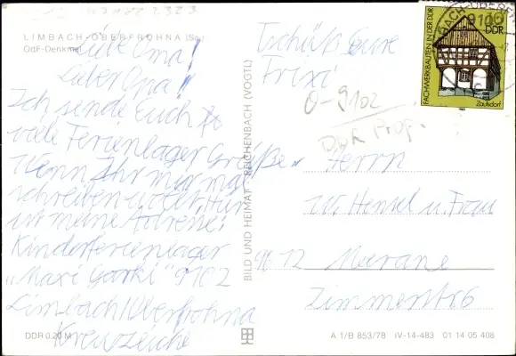 Ak Limbach Oberfrohna in Sachsen, OdF Denkmal