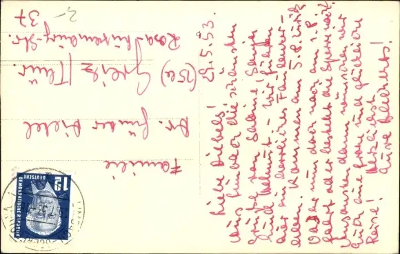 Zustand, siehe Scan, gelaufen, 1953 - ca 14 cm X 9 cm