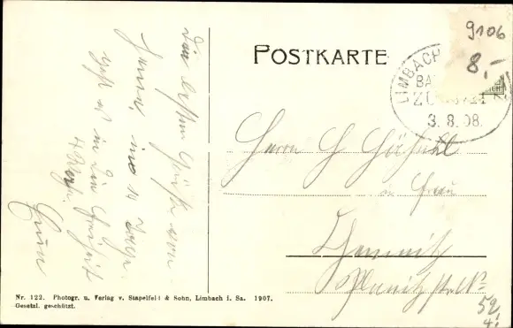 Zustand, siehe Scan, gelaufen, 1908 - ca 14 cm X 9 cm