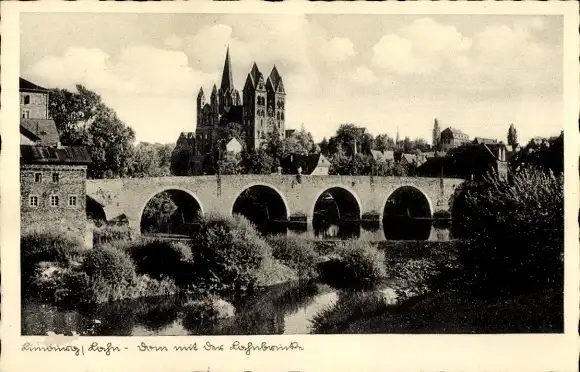 Ak Limburg an der Lahn, Dom mit der Lahnbrücke
