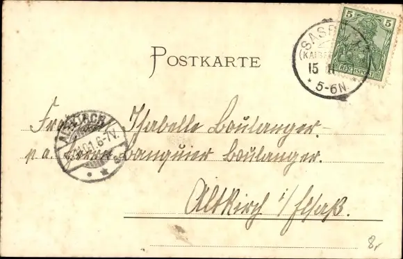 Zustand, siehe Scan, gelaufen, 1901- Inh. L. Strobel - ca 14 cm X 9 cm
