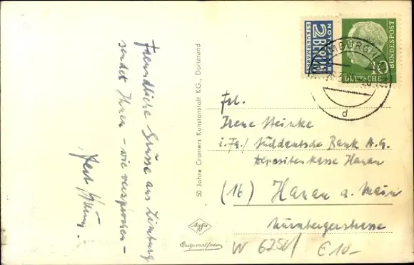 Zustand, siehe Scan, gelaufen, 1955 - ca 9 cm X 14 cm