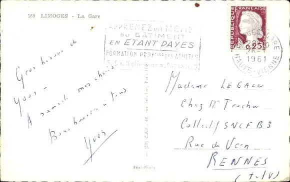 Zustand, siehe Scan, gelaufen, 1961 - ca 14 cm X 9 cm