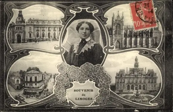 Ak Limoges Haute Vienne, Ortsansichten, Schloss, Straßenpartie, Frau in Tracht