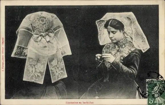 Ak Limousin, Frau in französischer Tracht beim Stricken