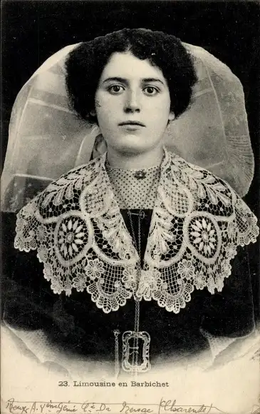 Ak Limousine en Barbichet, Frau in Tracht