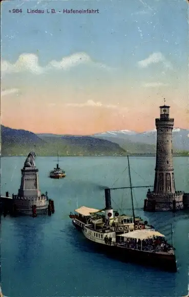 Ak Lindau Bodensee, Hafeneinfahrt, Leuchtturm, Dampfer