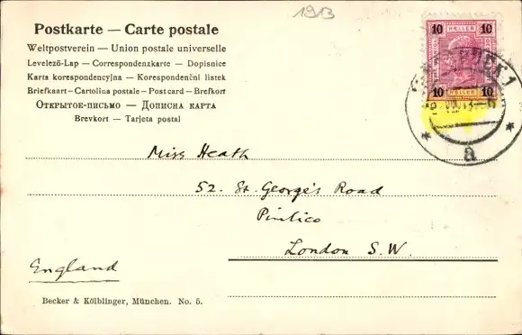 Zustand siehe Scan, gelaufen, 1913 - ca 14 cm X 9 cm