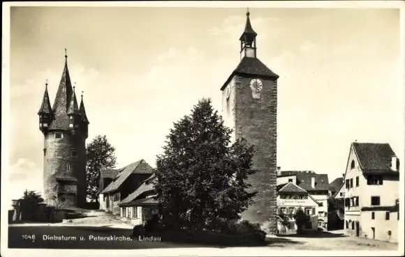 Ak Lindau am Bodensee Schwaben, Diebsturm, Peterskirche