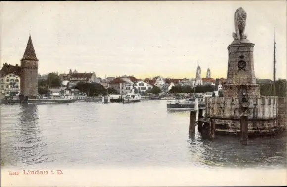 Ak Lindau am Bodensee Schwaben, Hafeneinfahrt, Monument