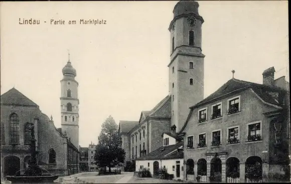 Ak Lindau am Bodensee Schwaben, Partie am Marktplatz