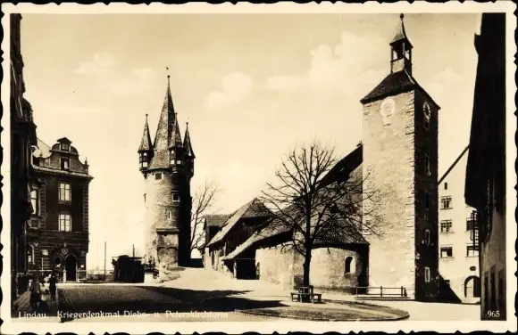 Ak Lindau im Bodensee, Kriegerdenkmal, Diebsturm, Peterskirchturm