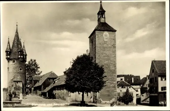 Ak Lindau im Bodensee, Peterskirche und Diebsturm