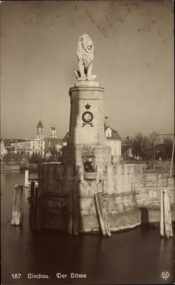 Ak Lindow im Bodensee, Der Löwe, Hafeneinfahrt