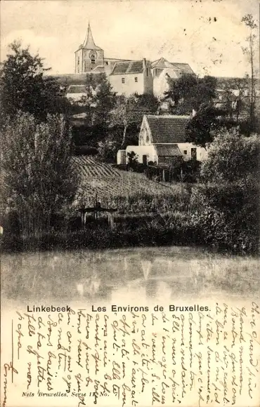 Ak Linkebeek Flämisch Brabant, Teilansicht vom Ort, Kirche