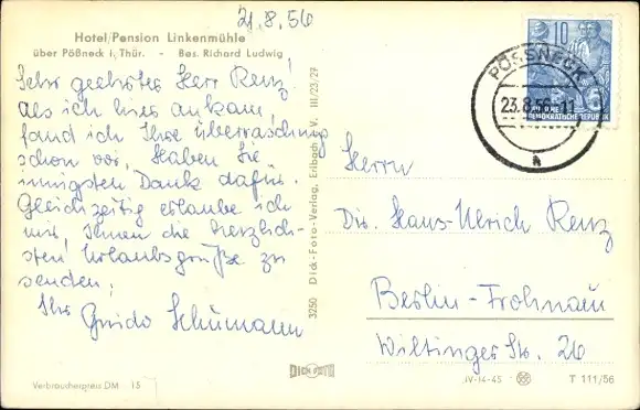 Zustand, siehe Scan, gelaufen, 1956- Bes. Richard Ludwig - ca 14 cm X 9 cm