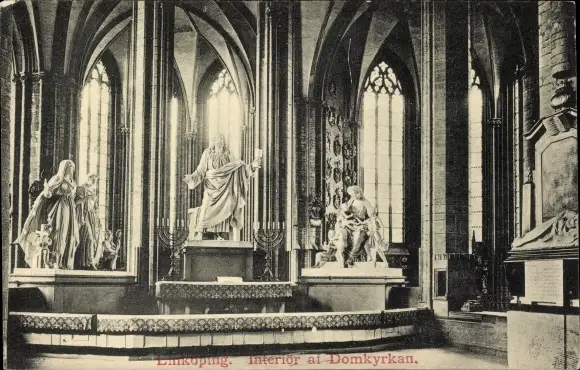 Ak Linköping Schweden, Interiör af Domkyrkan