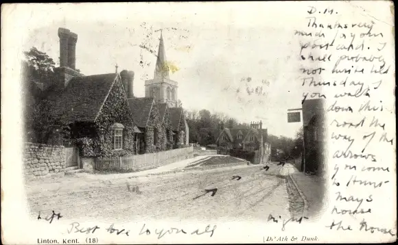 Ak Linton Kent Großbritannien, Dorfstraße, Kirche
