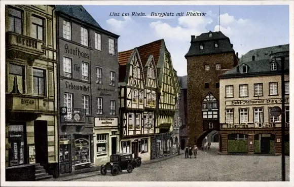 Ak Linz am Rhein, Burgplatz mit Rheintor