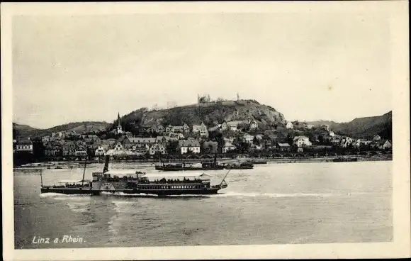 Ak Linz am Rhein, Gesamtansicht, Dampfer