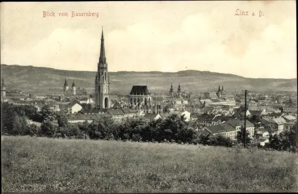 Ak Linz an der Donau Oberösterreich, Blick vom Bauernberg