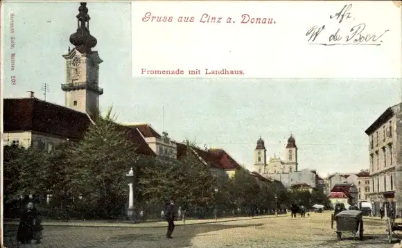 Ak Linz an der Donau Oberösterreich, Promenade, Landhaus
