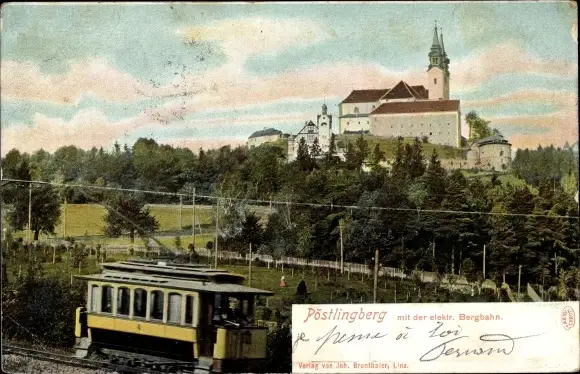 Ak Linz in Oberösterreich, Pöstlingberg mit elektrischer Bergbahn