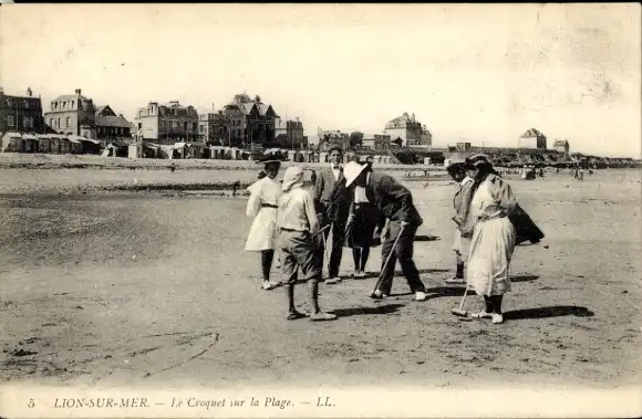 Ak Lion sur Mer Calvados, Krocket am Strand