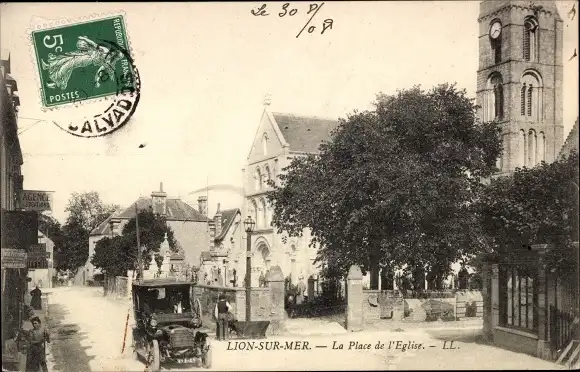 Ak Lion sur Mer Calvados, La Place de l'Eglise