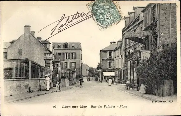 Ak Lion sur Mer Calvados, Rue des Falaises, Place