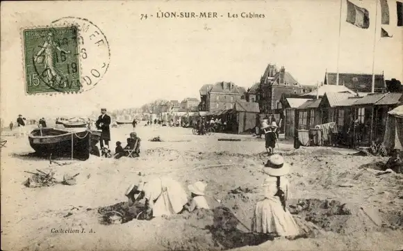 Ak Lion sur Mer Calvados, Strand, Badekabinen