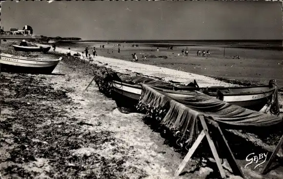 Ak Lion sur Mer Calvados, Strand, Fischerboote, Netze