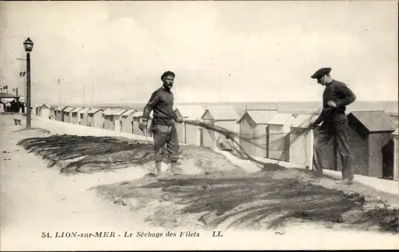 Ak Lion sur Mer Calvados, Trocknen von Filets