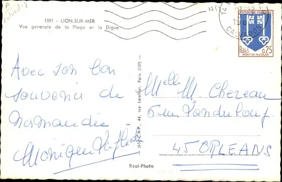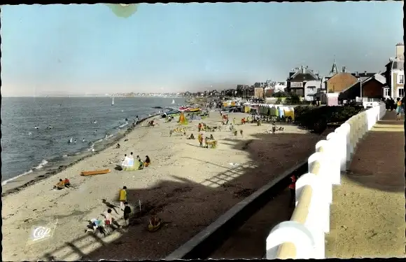 Ak Lion sur Mer Calvados, vue générale de la Plage et la Digue