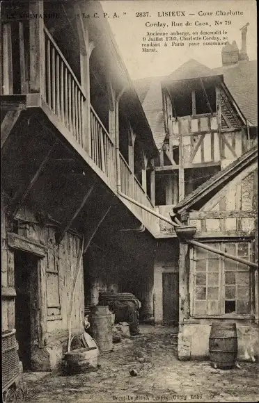 Ak Lisieux Calvados, Cour Charlotte, Corday, Rue de Caen