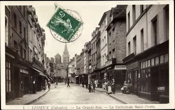 Ak Lisieux Calvados, La Grande Rue, Cathedrale Saint Pierre, Epicerie