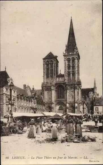 Ak Lisieux Calvados, La Place Thiers un Jour de Marche