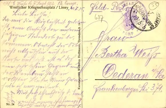 Ak Lissey Lothringen Meuse, Straßenszene mit Kirche, westlicher Kriegsschauplatz 1. WK