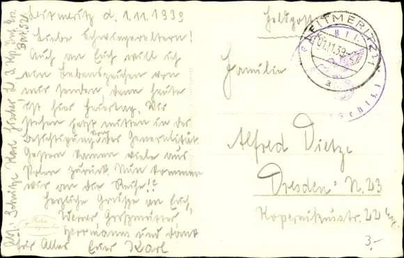Zustand, siehe Scan, gelaufen, 1939 - ca 9 cm X 14 cm