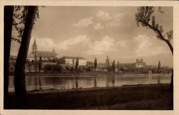 Ak Litoměřice Leitmeritz Region Aussig, Teilansicht, Uferpartie