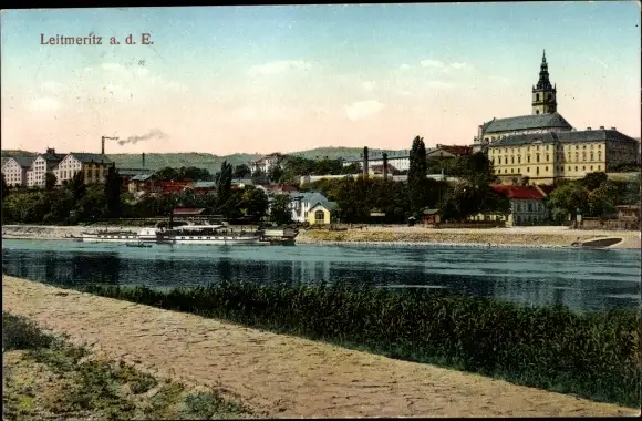 Ak Litoměřice Leitmeritz Region Aussig, Teilansicht mit Elbe